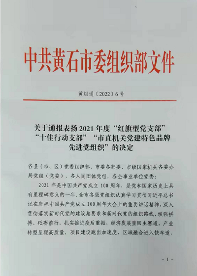 近日,黄石市委组织部下发通报,表彰2021年度全市先进党组织,华体网(中国)理工学部学生党支部被评为黄石市2021年度“红旗型”党支部。