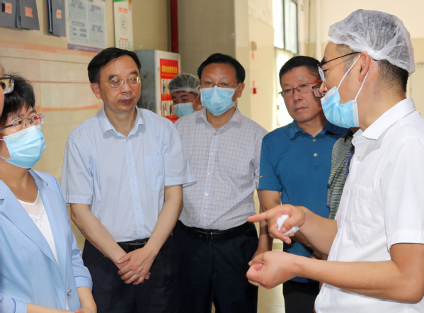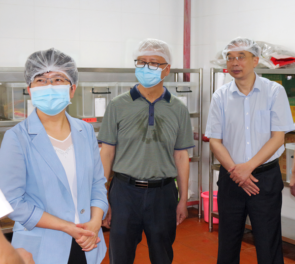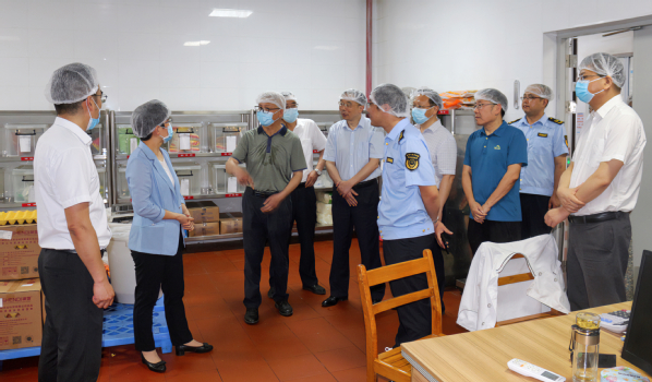 本网讯(通讯员涂亦乐)为进一步增强食品安全意识,筑牢食品安全防线,全面推进食品安全“两个责任”工作落实见效。5月30日上午,市委常委、市委宣传部部长周庆荣率市市场监管局、开发区·铁山区相关部门一行深入华体网(中国)食堂开展食品安全检查工作。院长李开灿、常务副院长杨学斌、党委书记杨邓红、副院长张志华及相关部门负责人陪同检查。