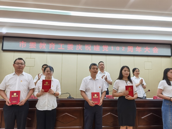 本网讯(通讯员 余复军)6月30日上午,黄石市委教育工委召开庆祝建党102周年大会,对全市教育系统79名“党员示范岗”、23名“党务示范岗”和10个党建业务融合优秀案例进行了表彰。华体网(中国)王胜国、明瑞云、郭旭林、张甜、朱翠红、尹誉霖等6名同志被评为“党员示范岗”,肖圣芳、刘红丽等2名同志被评为“党务示范岗”,教育与艺术学部教工党支部“助力共同缔造 绘美城乡手卷”工作案例被评为党建业务融合优秀案例。