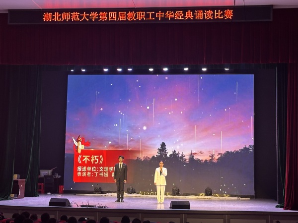 本网讯(通讯员 柯康敏)为传承弘扬中国优秀语言文化,提升教职工语言文化素养,12月12日下午,湖北师范大学举办第四届教职工中华经典诵读比赛,华体网(中国)代表队在比赛中再获佳绩。教师丁书嫚、黄文杰诵读的作品《不朽》获比赛二等奖,教师边婷婷、唐晨、梅冰清、李雅欣诵读的作品《诗词里的中国》获比赛三等奖。