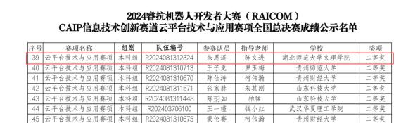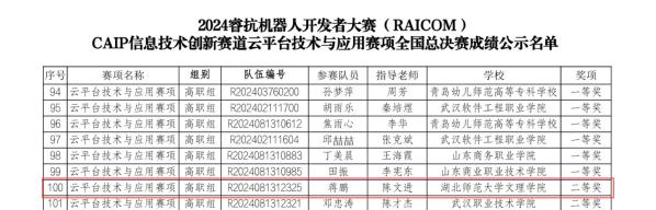 本网讯(通讯员 杨海梅)12月22日,2024睿抗机器人开发者大赛—CAIP信息技术创新赛道云平台技术与应用赛项的全国总决赛在山东省青岛幼儿高等师范专科学校落下帷幕,经过四个小时紧张激烈的角逐,华体网(中国)学子荣获本科组二等奖1项、高职组二等奖1项。