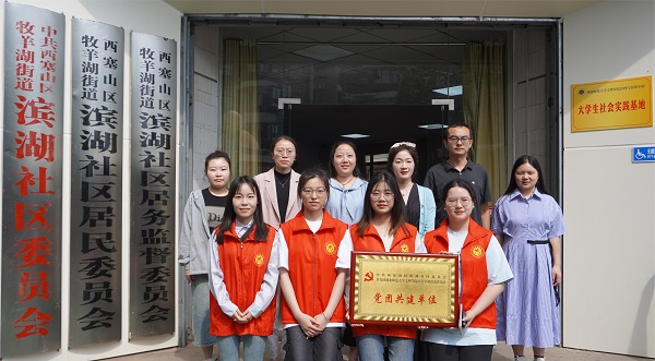 5月10日上午9点,经济与管理学部与西塞山区滨湖社区举办了“大学生社会实践基地”暨“党团共建单位”授牌、挂牌仪式。校团委书记陈荟芸、经济与管理学部党总支副书记罗铭、团总支书记姜希望、学工办副主任吕彩云、辅导员郑莎莎、学生代表以及滨湖社区党委书记易姣、党委副书记王余晖参加此次活动。