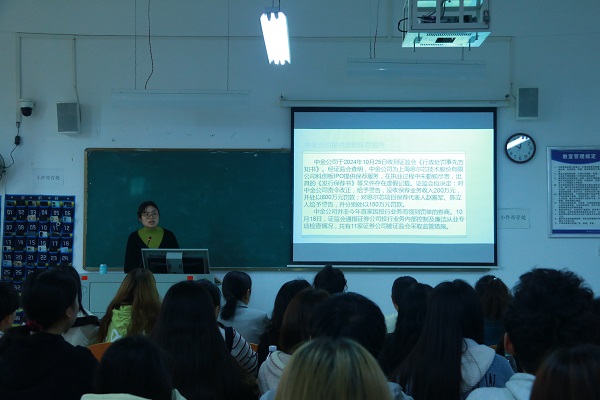 聂羽佳老师深入分析当前金融行业的形势,围绕“中金公司提供虚假保荐服务”和“光大集团原董事长李晓鹏被大庆市人民检察院起诉指控”两个反面案例,详细讲解了金融行业的廉洁自律要求和金融腐败的危害性引导师生正确理解金融行业,明确职业行为红线、坚守职业道德标准、重视个人品德塑造,做个有底线的金融人。最后,聂老师强调,在金融领域,只有始终坚守诚信与责任,才能建立起稳固的职业信誉和良好的行业形象。