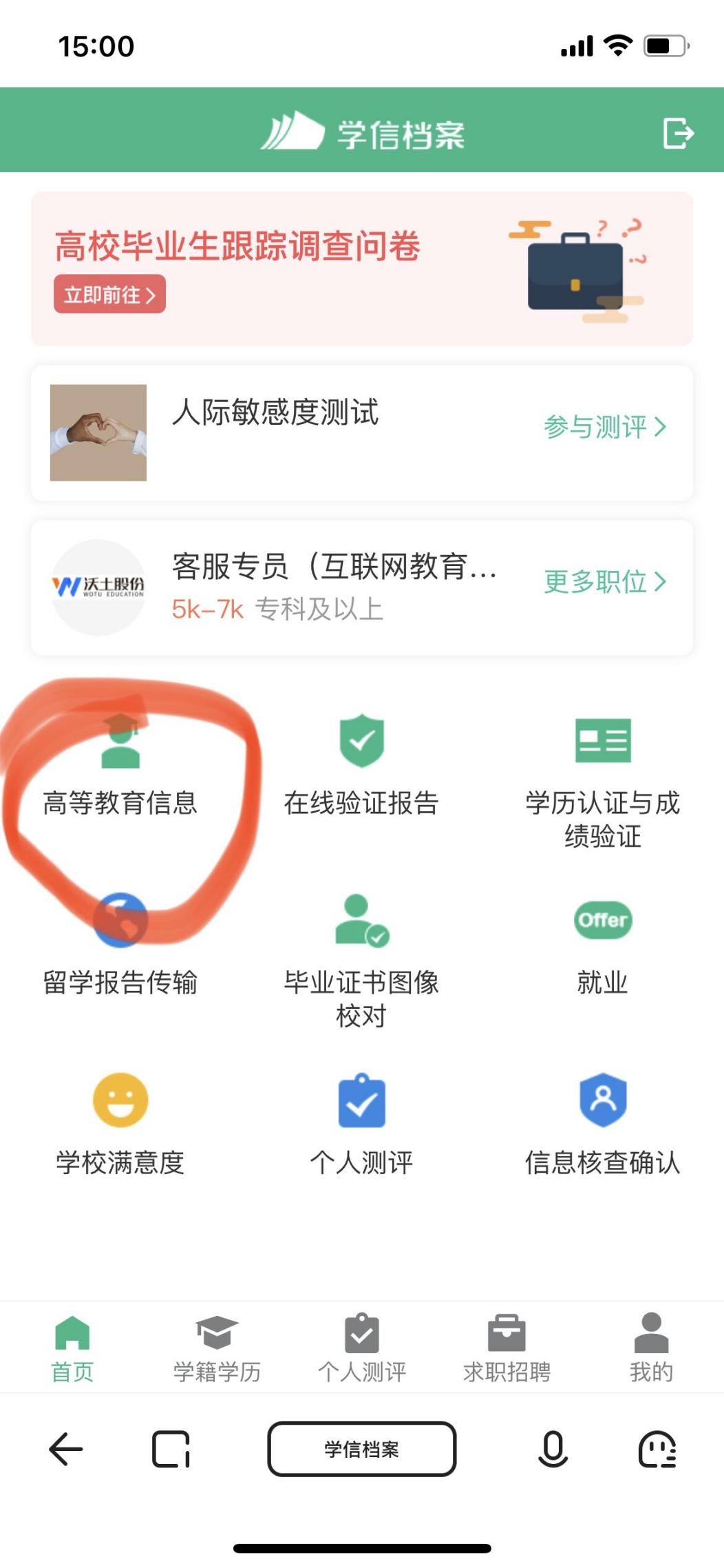 注册成功后,验证学校名称,查看高等教育信息:
