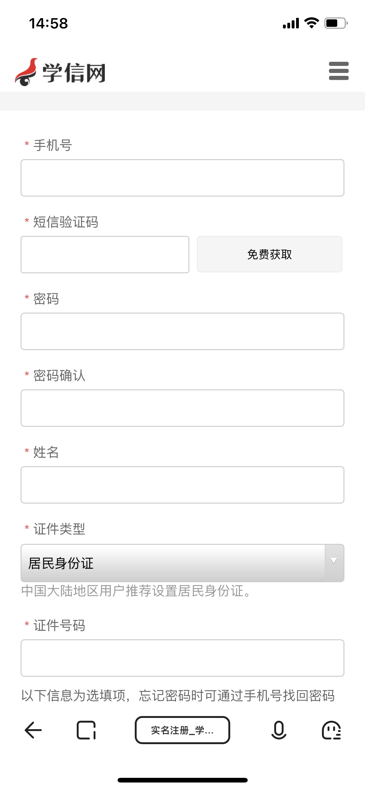 3、按照要求进行学信网账号注册: