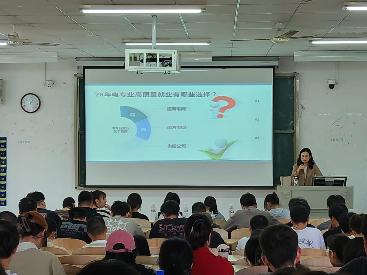 为促进高质量充分就业,拓展学生对就业的认识,在校领导张志华院长的全力支持和协调下,2024年10月16日中午,理工学部邀请武汉易电进校开展国家电网招聘政策宣讲,理工学部2022级和2023级电气工程及其自动化专业175名同学参加了此次宣讲会。