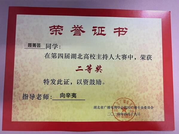 人文学部聂菁芸同学荣获第四届湖北省高校主持人大赛二等奖
