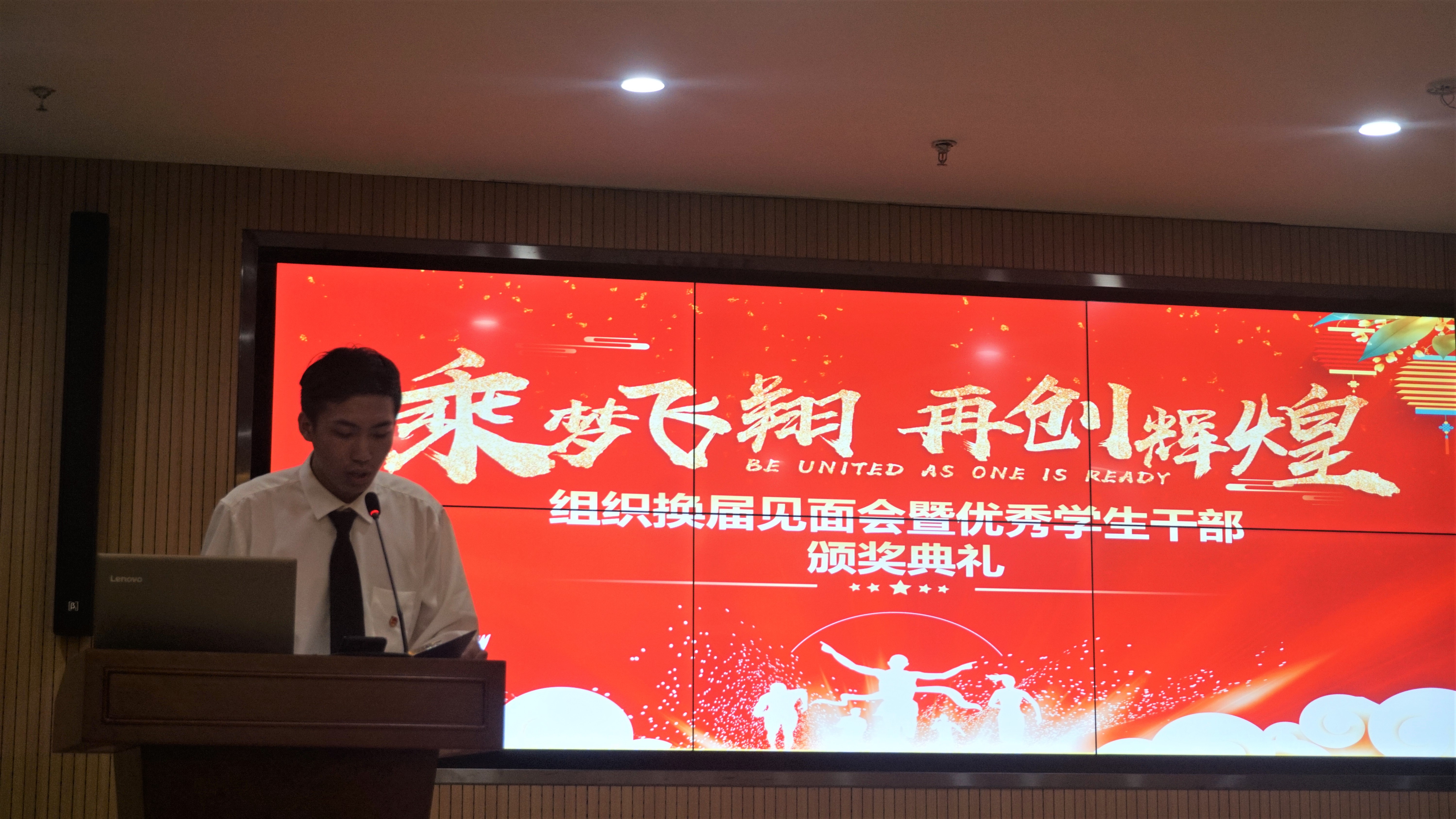 2019年6月21日中午十二点整,华体网在院图书馆学术报告厅举办院团委组织新老成员换届见面会暨第十届学生干部颁奖仪式。学工部副部长李先华老师、团委副书记陈小龙老师以及团委韦海秋老师莅临活动现场,新老学生干部全体参与。