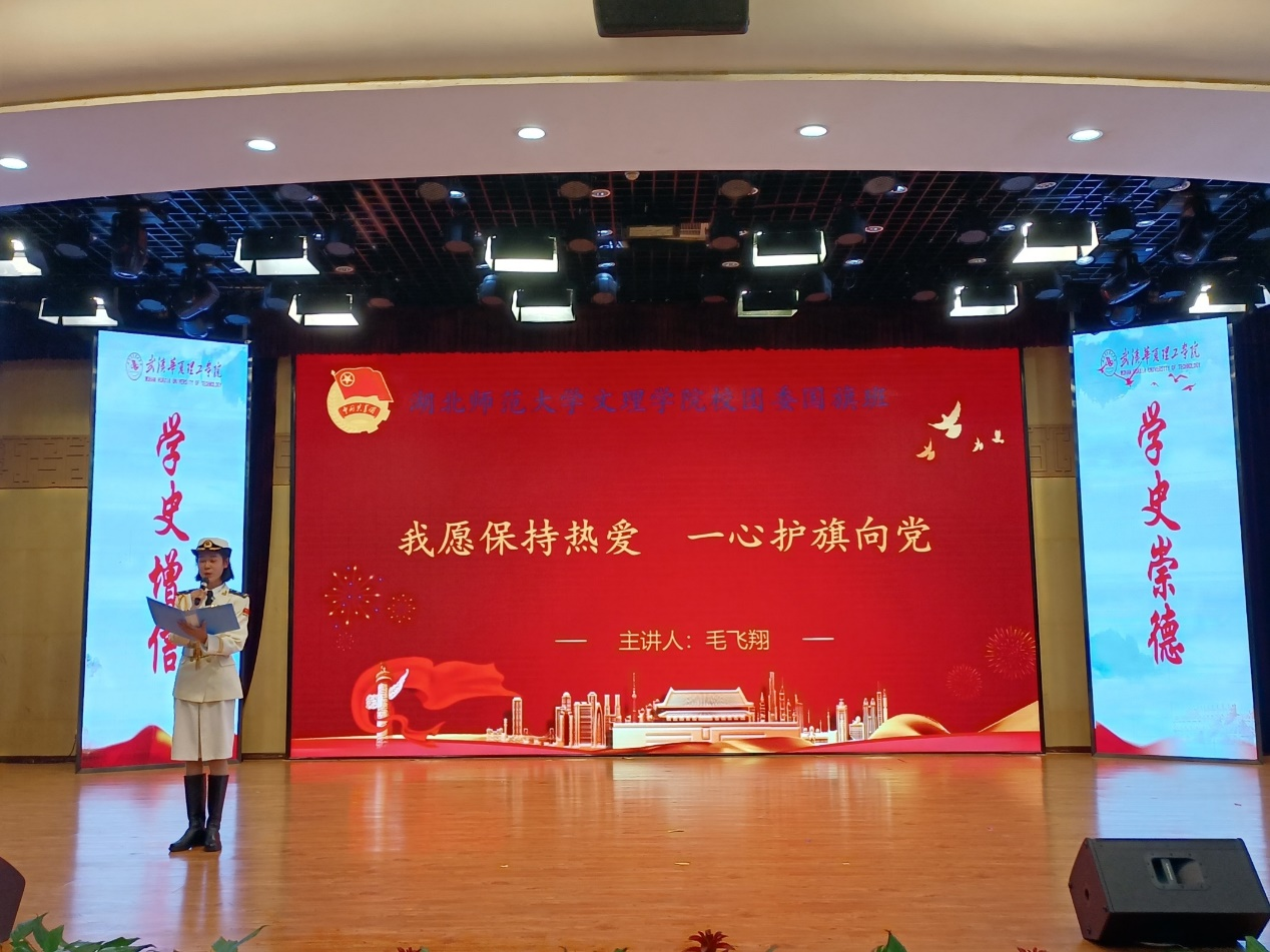 华体网(中国)2019级国旗班团支部主讲人毛飞翔,以班训”忠诚正义、爱国荣校“为依托,结合支部特色与亮点,充分展示了支部组织建设、思想建设、活动开展、社会实践等众多方面成果,风采展示环节中笔直的身影、飒爽的军姿与坚定的步伐尽展新时代青年风采,“请党放心、强国有我!”,呐喊响彻大厅,用铮铮誓言响应先辈们的号召。