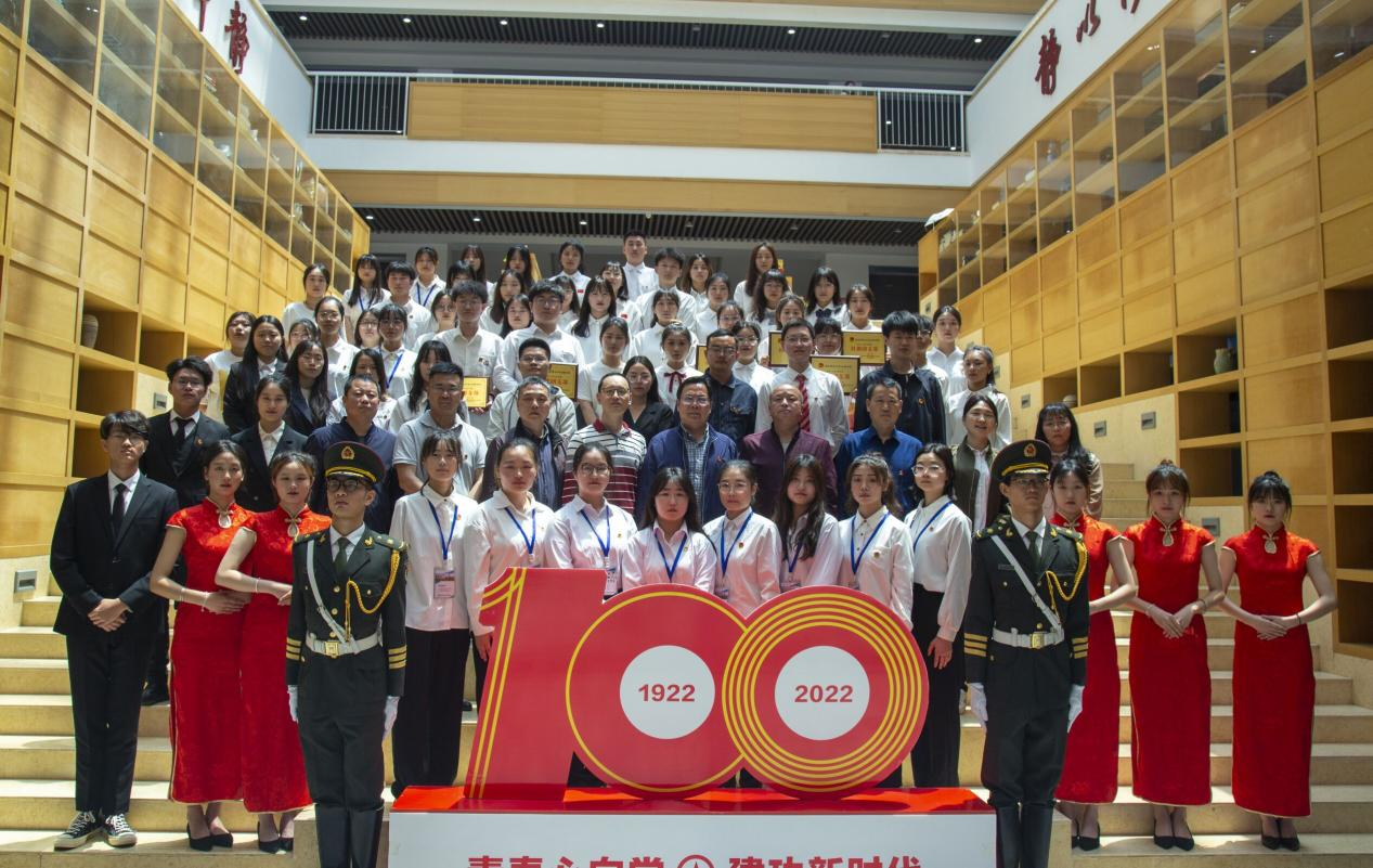 大会在高亢激昂的团歌声中拉开帷幕。新发展团员举行了集中宣誓仪式,校团委书记陈荟芸宣读了《关于2021-2022年度共青团先进集体和先进个人的表彰决定》,杨之毛副书记等领导分别为市级、校级“优秀共青团员”、“优秀共青团干部”、“红旗团支部”和“红旗团总支”获奖代表颁奖。市级优秀共青团干部尹誉霖、优秀学生代表武如钰分别作了代表发言。最后,本次五四表彰大会在《没有共产党就没有新中国》的嘹亮歌声中圆满落下帷幕。