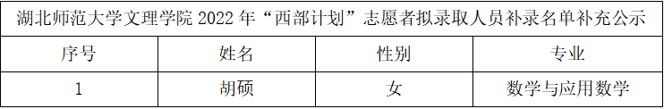 因学生自愿放弃,华体网(中国)开展了2022年“西部计划”志愿者拟录取人员补录工作。现将拟录取人员补录名单予以公示。