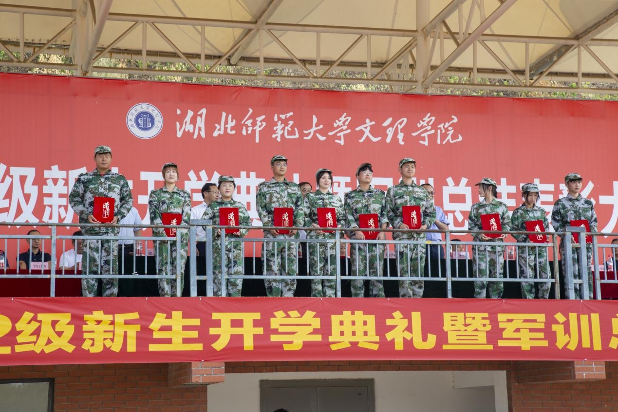 常务副院长杨学斌教授向承训单位授予锦旗,党委书记杨邓红教授宣读2022级新生军训表彰决定,为新生军训先进个人及先进集体颁发奖项。