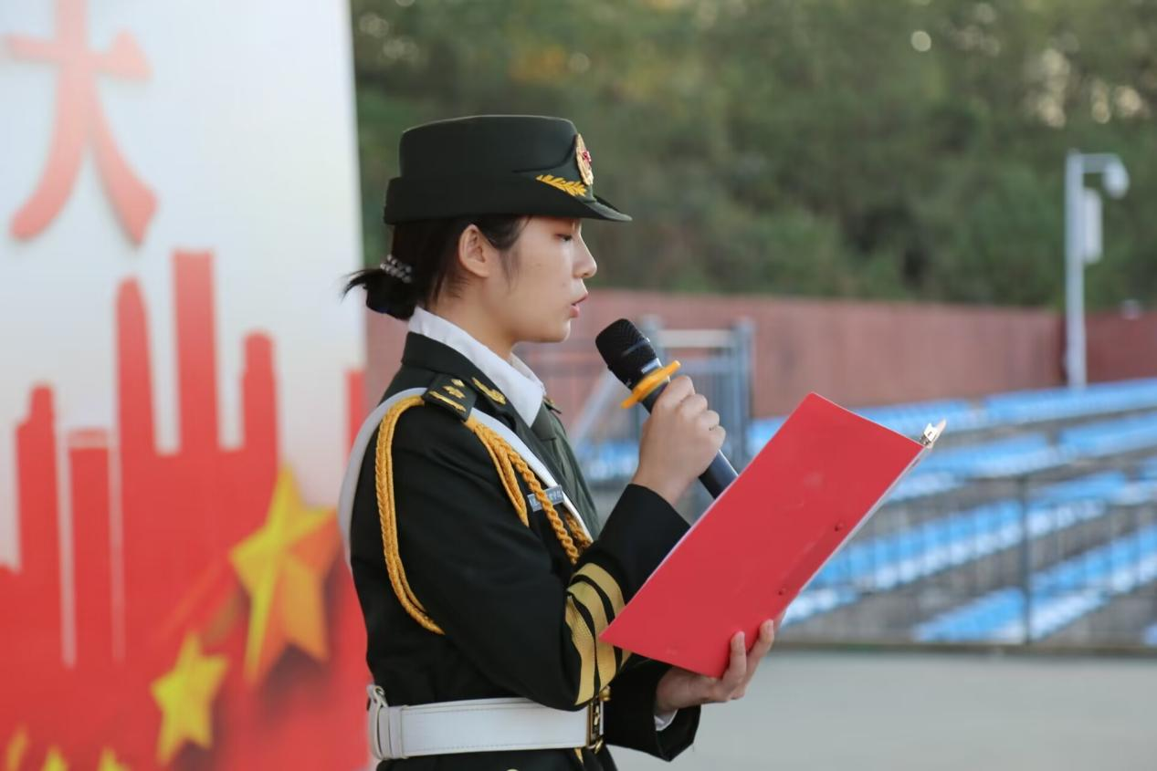 紧接着,校国旗班训练队员尹嘉蕾以《同心同德跟党走,青春献礼二十大》为题做国旗下演讲,她表示,作为新时代的青年应以新为径,不断提升创新精神,把开拓创新作为一种常态,把立志报国作为自我理想,将实现自我价值同实现中华民族伟大复兴紧密联系起来。