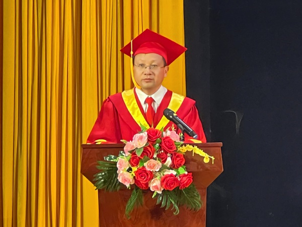 李开灿在讲话中代表学校向圆满完成学业的毕业生致以最热烈的祝贺,他表示,多年的求学生涯,同学们不仅具备了知识体系和专业能力,还收获了永生难忘、日久弥新的同学谊和师生情。在临别赠言中,他提出了三点希望:一是要胸怀天下,与时代同频,不断提升思想深度;二是要深学笃行,与社会共振,不断增强实践力度;三是要理性独立,与他人共赢,不断增加人生厚度。同时,他也希望大家奔赴新征程后能够不忘母校,常回家看看。