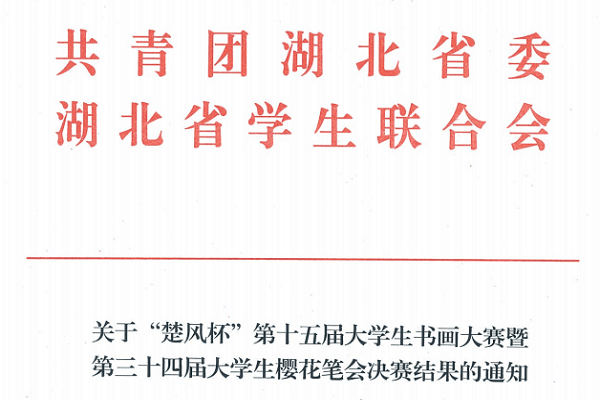 2019年5月29日,共青团湖北省委、湖北省学生联合会公布“楚风杯”第十五届大学生书画大赛暨第三十四届大学生樱花笔会决赛结果,华体网(中国)高职二学部韩诗宇同学荣获大赛展览组软笔类优秀奖,充分展现了华体网(中国)学生过硬的综合素质,凸显了华体网(中国)文化育人工作实效。