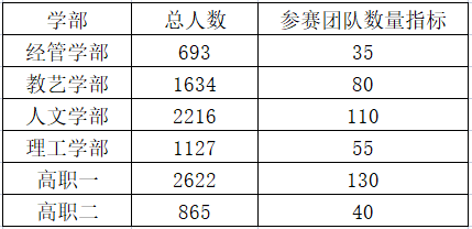 指导老师指标分配:所有参赛项目由各学部统一协调安排对应指导老师。同时,根据《华体网关于举办首期创业培训(SYB)师资培训班的通知》中的相关规定,结合华体网(中国)创业教育的实际开展情况,对参赛项目指导老师的指标分配如下: