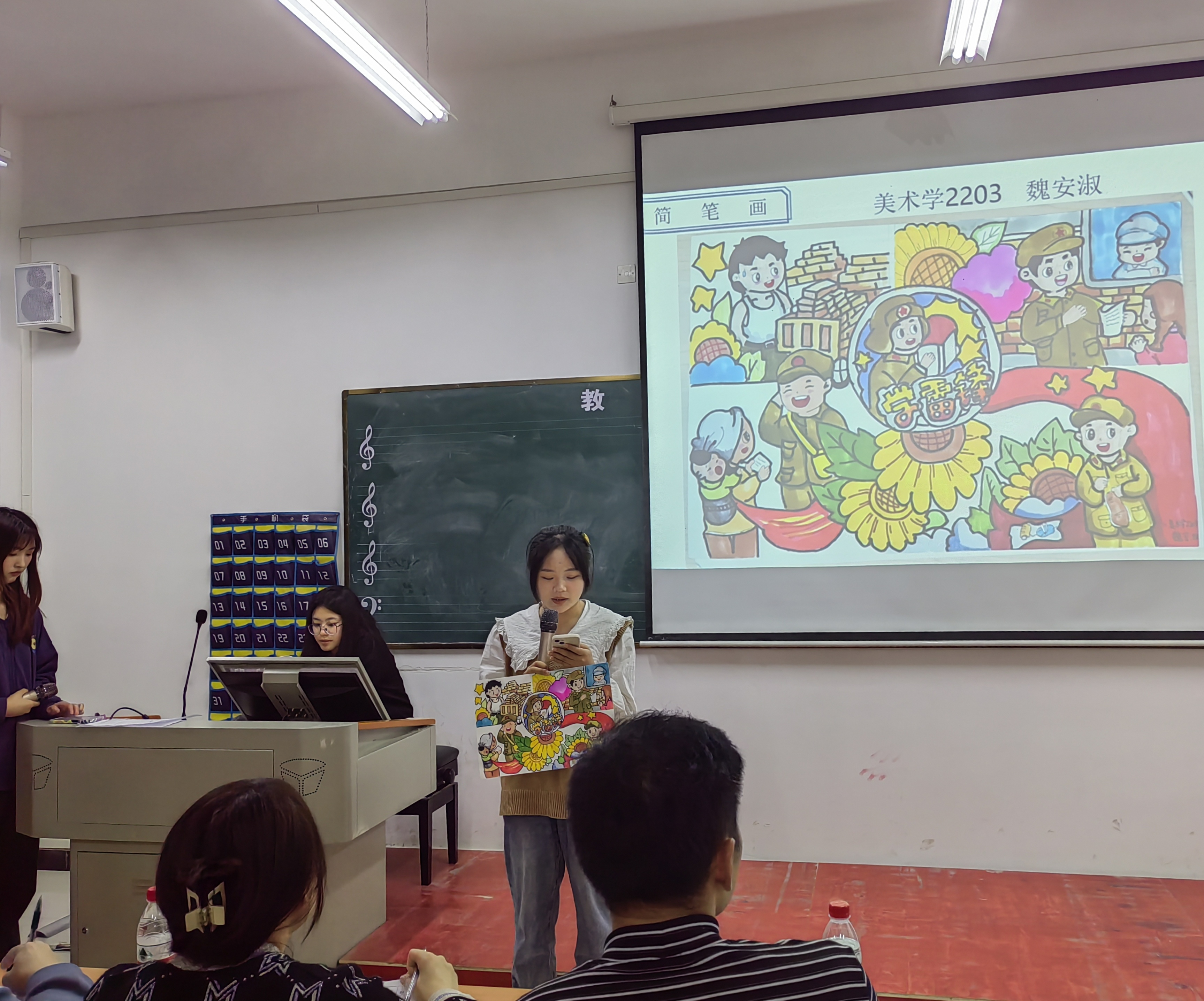 阳春三月,为弘扬雷锋精神,全面推进素质教育,提升大学生综合素质与人文素养,充分发挥教育育人铸魂的作用,教育与艺术学部于20233151830举办了以“弘扬雷锋精神”为主题的三字一话比赛,活动旨在选拔优秀的选手参加院团委举办的“三字一话”比赛。比赛特邀请专业教师李松、汤澜、谭青、尹誉霖、孙盼蕊等担当评委。